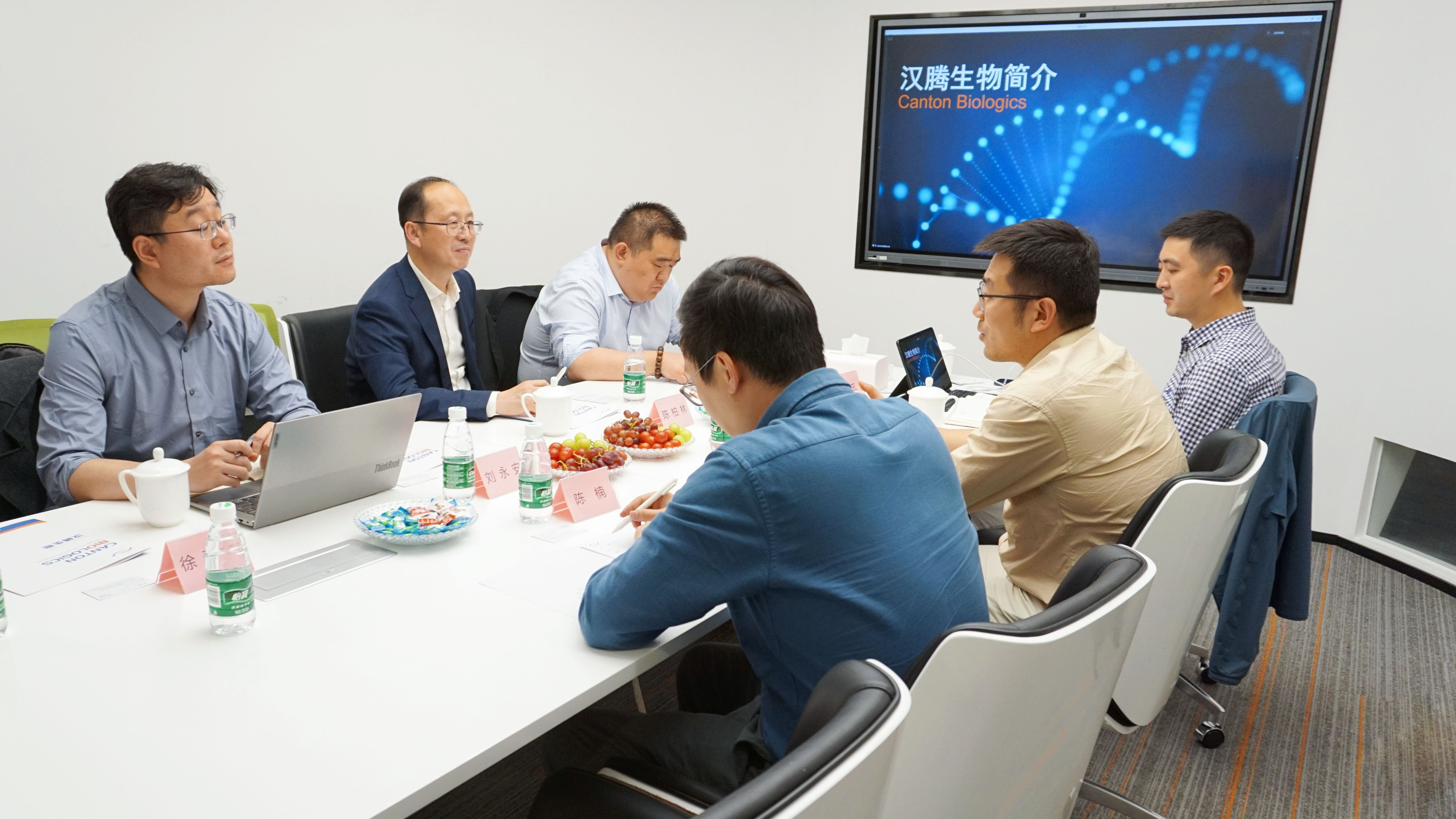 杭实集团领导一行调研了汉腾生物佛山昆仑生产基地和广州伯利恒研发基地。在昆仑生产基地,由生产总监余爱彬陪同参观,他介绍,商业化生产是公司重点服务项目,昆仑生产基地具备50-2000L的原液及各种制剂灌装生产能力,技术服务上可快速响应单抗、双抗、重组蛋白、融合蛋白、疫苗等生物药的生产。交谈中,杭实集团领导一行对汉腾生物高质量、高效率的规模化生产表示高度认可。